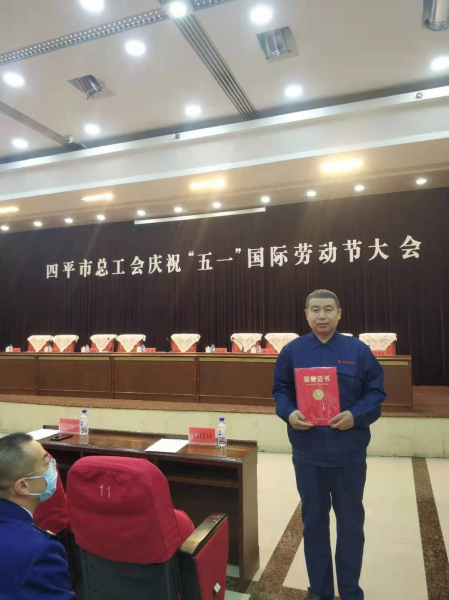 2021年4月27日,四平市總工會召開了慶祝“五一”國際勞動節(jié)大會,對2021年選樹的25個市“五一勞動獎狀”獲得單位、64名“五一勞動獎?wù)?rdquo;獲得者和19 個“工人先鋒號”獲得單位進(jìn)行了表彰。我公司設(shè)備處檢修作業(yè)區(qū)焊鉗組組長劉軍同志被授予2021年四平市五一勞動獎?wù)隆?/p>