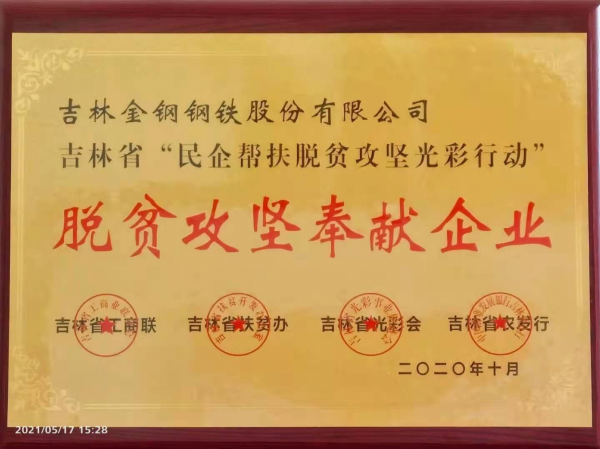 公司在吉林省“民企幫扶脫貧攻堅(jiān)光彩行動”中,被吉林省工商聯(lián)、吉林省扶貧辦、吉林省光彩會、吉林省農(nóng)發(fā)行等聯(lián)合評為“脫貧攻堅(jiān)奉獻(xiàn)企業(yè)”。